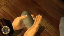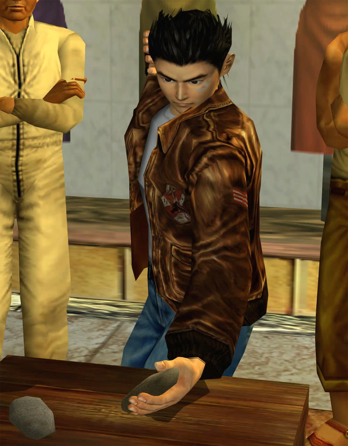 The Breaking the Stone mini-game is a one time only event. It is played with Ryo holding a stone in his palm and a meter at the bottom left of the screen rising and falling. The player must strike when the meter is at it's peak and once again as the meter turns from yellow to blue.