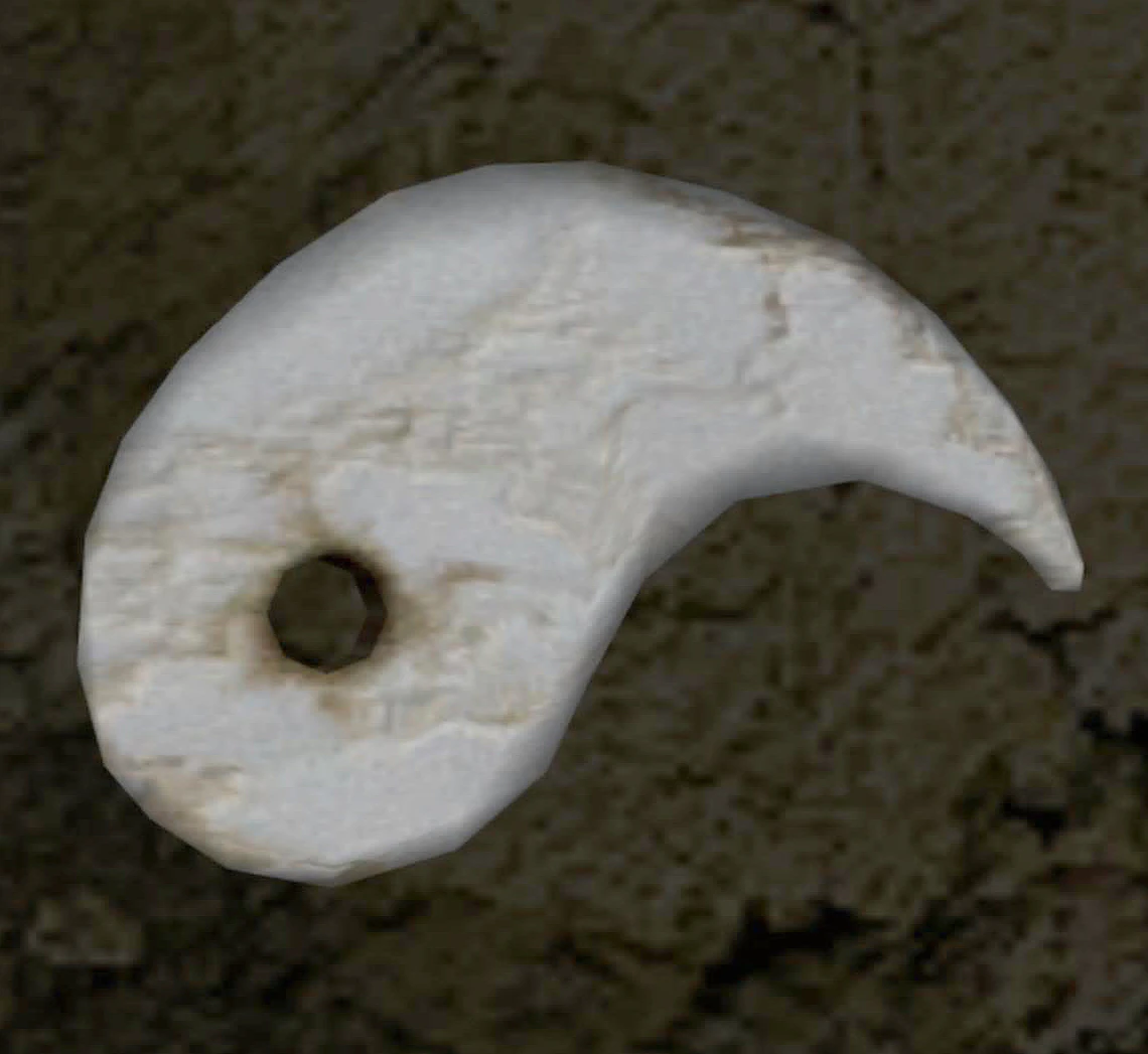 Before Ryo is ready to leave for Guilin, he briefly returns to Man Mo Temple in Wan Chai, Hong Kong. Before he leaves, Xiuying gives Ryo this stone which was given to her brother Ziming Hong. The bead represents half of a Ying and Yang symbol, Ziming kept the other half of the bead.