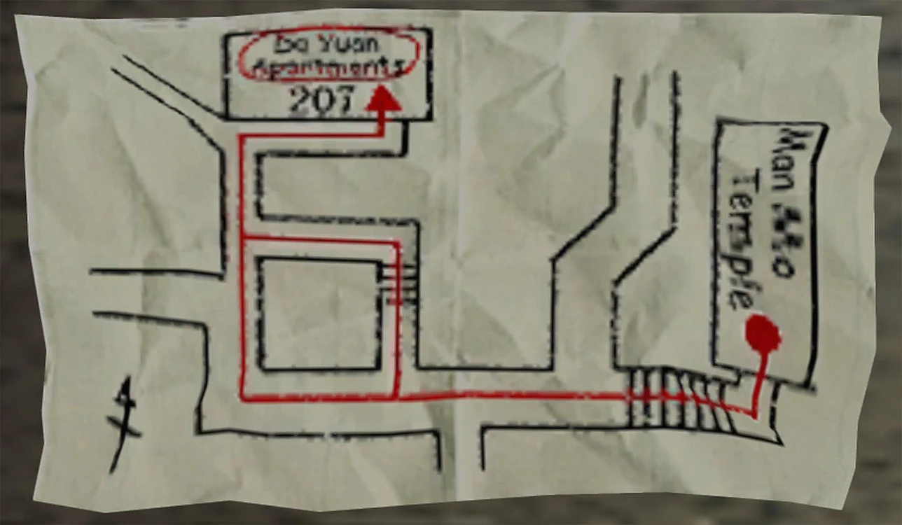 After Ryo spars with Xiuying at Man Mo Temple, she will give Ryo a map showing how to get to the Da Yuan Apartments where she allows Ryo to stay.