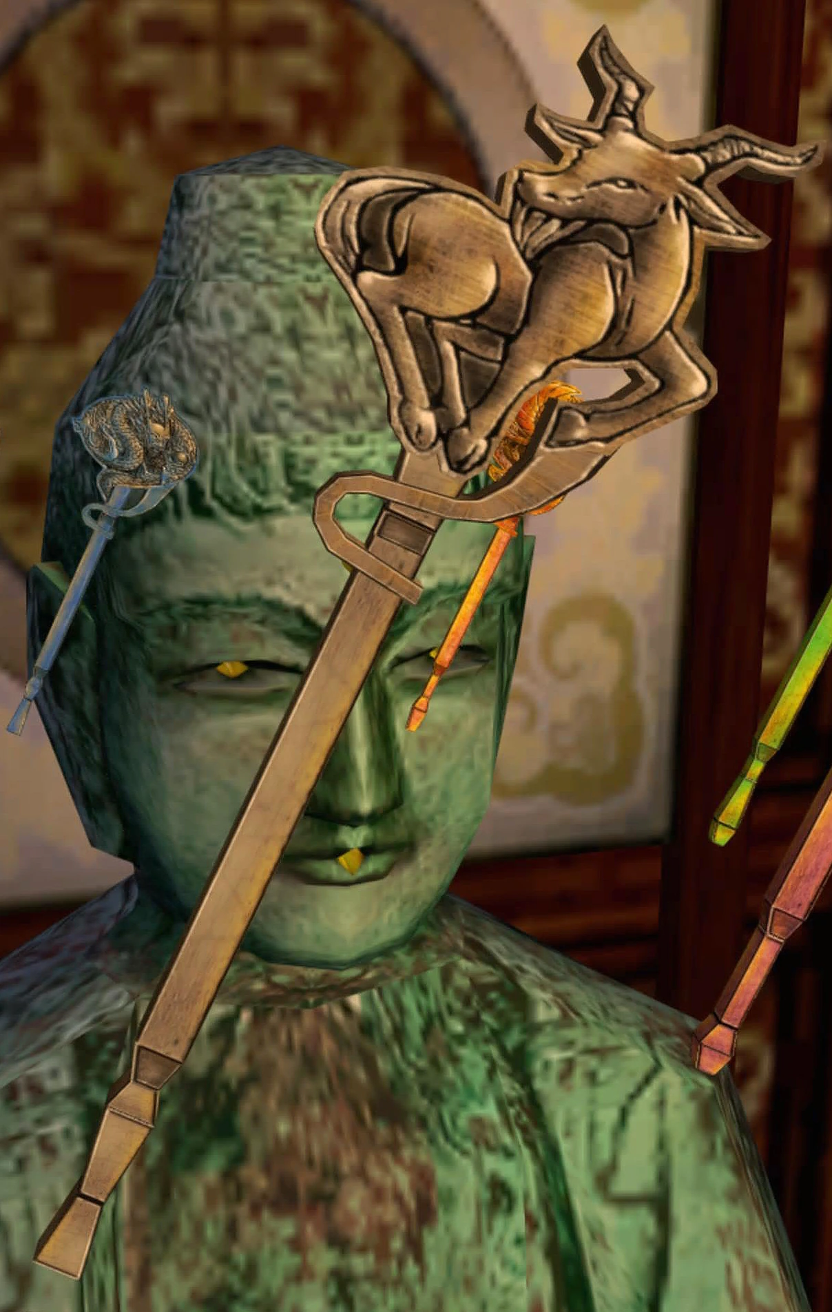 The Goat Key (山羊の棒 Yagi No Bō) is found inside the Five Stars Corp on the 10th floor of the Ghost Hall Building in the Thousand White Quarter, Kowloon, Hong Kong in the game Shenmue II.