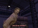 Later, when Ryo gets a job as a forklift operator at the harbor, on his third day of work, Harry and Jones harass him while he's working and ambush him in a warehouse. Ryo defeats them and the other sailors inside there, and interrogates Harry for info on the Mad Angels. He says they can be found behind Warehouse #17. On Ryo's fifth day of work, Ryo chases Tony Abrams into a warehouse after he beats up Goro Mihashi. Ryo then faces Harry and other sailors inside there and defeats them all for good.