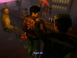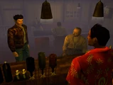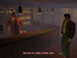The bartender is Yoshifumi Hato. At first, Ryo Hazuki is not allowed to enter the bar. Yoshifumi shooed him away at the entrance of the bar. Ryo is allowed in once he searches for sailors. He beats up the sailors in the bar, with Yoshifumi telling him to never come back.