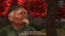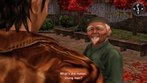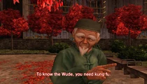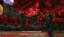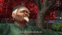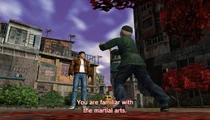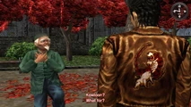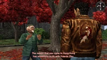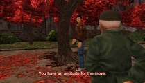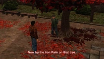 When Ryo returns to the park after not being able to see Lishao Tao when he enters Man Mo Temple, Jianmin learns from him that he's seeking Lishao Tao and decides to show him the Iron Palm move. He offers to give Ryo a hint to where the location of Lishao Tao is if he manages to cover the ground with leaves after using the Iron Palm move on the fire tree there. Ryo gives it a shot and only manages to get a single leaf to fall on his first try.
