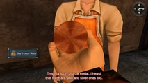 After smashing a table while chasing Wong through the Lai Lai Eatery, Ryo can compensate for the damages he caused and will be given the Big Bronze Medal by Zhenji as a reward for his kind gesture. [1]