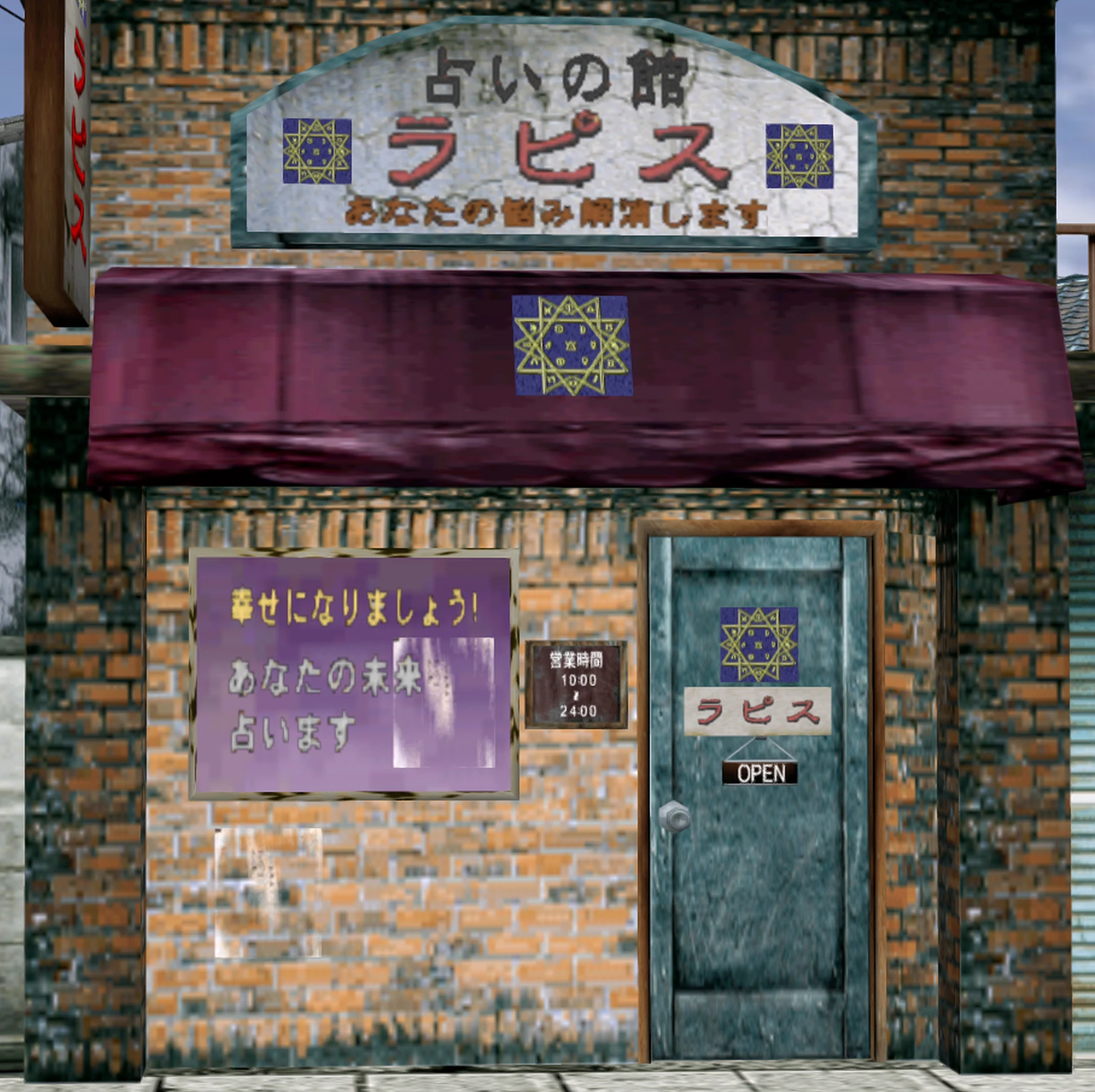 Lapis Fortune Teller (ラピス Rapisu) is a fortuneteller's located in Dobuita, Yokosuka, Japan in the game Shenmue. Originally the shop was a grocery store, but it was turned into a fortuenteller's when the owner, Natsumi Sakuragi's parents died in a traffic accident. The shop opens at 10:00 AM and closes at midnight. It is also the only fortuneteller location in the first Shenmue.