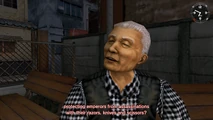 In Episode 2, he appears in a flashback Ryo has of him saying that Lan Di could be a part of the Chinese underworld. He also very briefly appears when Ryo is looking for someone to translate the Chinese letter that was sent to his father. He asks Gong Hui, and he can't read it.