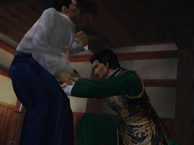 In Episode 1, he murders Iwao and steals the dragon mirror from him like how he does in the game. The major difference in this scene is that Lan Di was the one who gave Ryo the scar on his cheek. In the games, Ryo had the scar and bandage on his cheek from the start of the series.