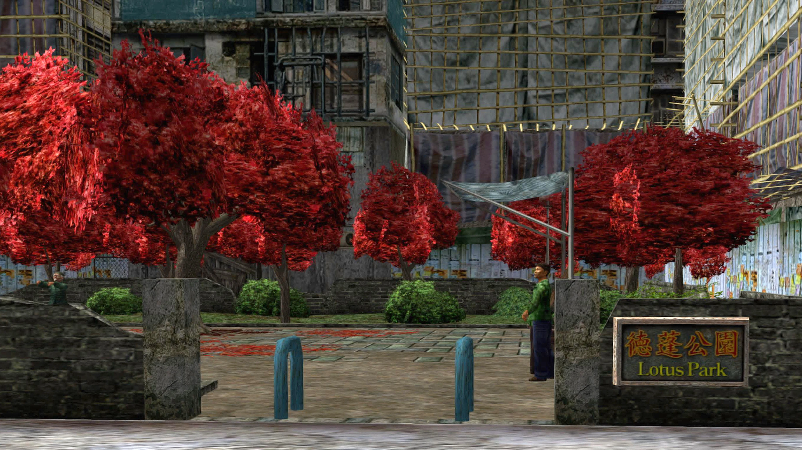Lotus Park (徳蓬公園 Dé Péng Gōngyuán) is a small park located in the South Carmain Quarter, Wan Chai, Hong Kong in the game Shenmue II. It mostly stands out for it's bright red trees.