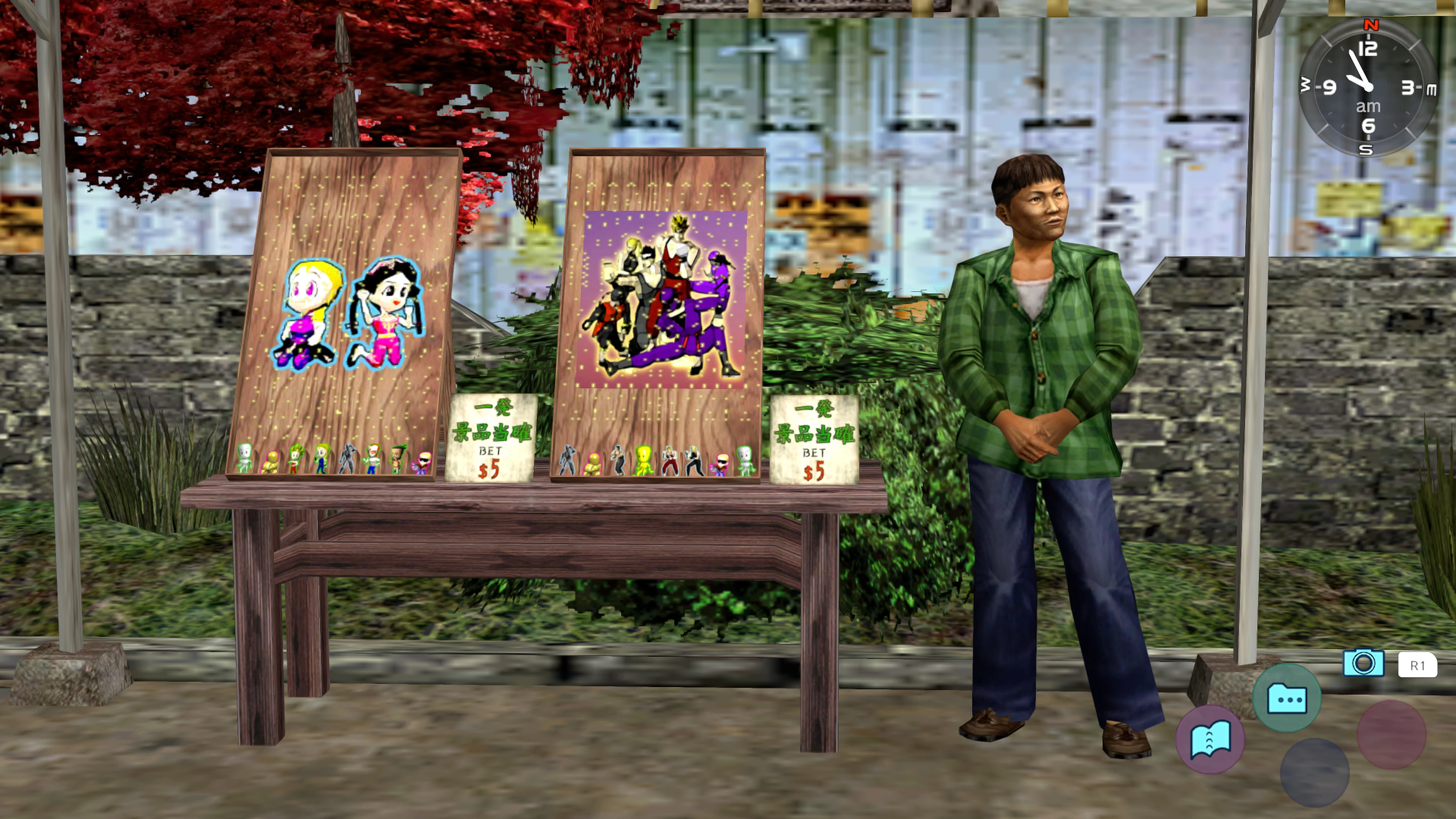 Jianmin Tao can often be found practicing Chen-style Tai Chi here. Ryo Hazuki can visit him to learn the move Iron Palm and about the wude term GON by training for the Iron Palm. Zongxun Fang is working in the park at a Lucky Hit stand.