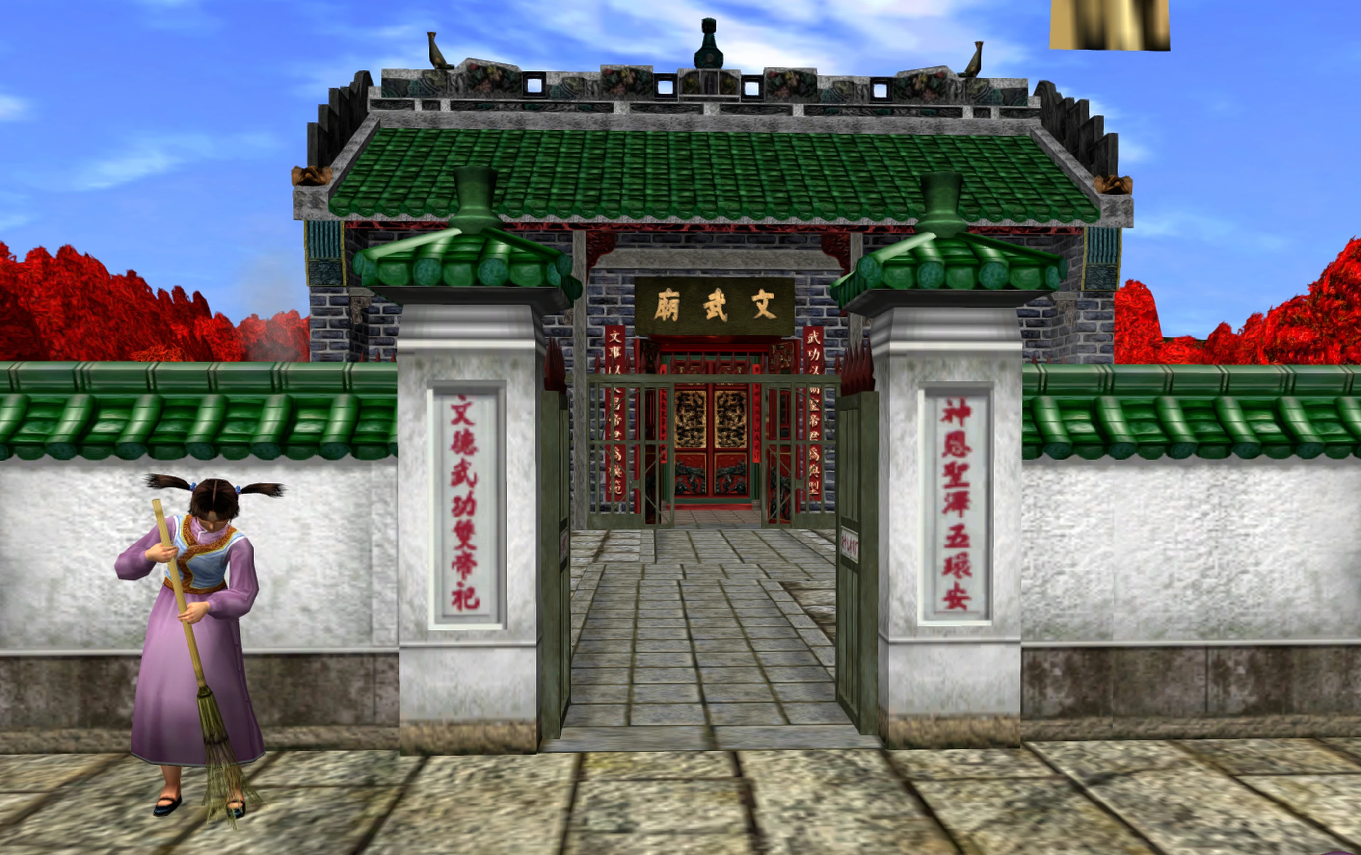 Man Mo Temple (文武廟 Wén Wǔmiào) is a Taoist temple in Scarlet Hills, Wan Chai, Hong Kong in the game Shenmue II.