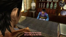 Ryo Hazuki talks to Ren at his shop after he finds a Chawan Sign Paper inside The Wulinshu book by Yuanda Zhu hoping to find out what it means. Ren says it's the Chawan Sign, a code which martial artists use to communicate with each other. He says he learned it from Guixiang a long time ago. Ryo asks if he's referring to the woman Guixiang that stays at the Yan Tin Apartments and he says yes. Ryo then heads to the Yan Tin Apartments to ask Guixiang about the sign, and learns more about it.