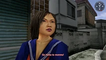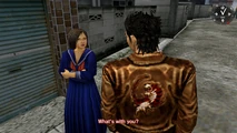If Ryo Hazuki approaches Hokuhoku Lunches at the New Yokosuka Harbor District after he learns he can't enter the Old Warehouse District during the daytime due to the heavy security, a cutscene will trigger with Mai being rude to her sister who runs the lunch stand Hisaka Sawano. After Mai calls her a "prude" she walks over to Rena and Yumiko. Hisaka reveals to Ryo that Mai has been hanging out with a bad crowd and has been treating her family bad. Hisaka will then ask Ryo to talk to her and if he accepts, he will find Mai hanging out with Rena and Yumiko. This triggers a Quick Time Event battle with Rena and Yumiko. If Ryo defeats them, he knocks them out each with a chop to the neck, and tells Mai that she shouldn't treat her sister badly. If Ryo loses, the girls attack him with their weapons and leave him on the ground unconscious and walk away. Mai will then show concern for Ryo. After this, Masayuki Fukuhara takes an injured Ryo to his room and tells him to take it easy and rest for the remainder of the day.