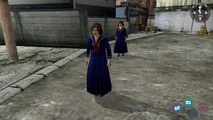 Rena and Yumiko can also be encountered in free quest and if Ryo tries to talk to them, they'll be very rude to him and tell him to go away. During nighttime in Dobuita, they can be seen hanging out with Akio Enoki and Tetsuya Nagashima at their hangout area at the Wakaba Apartments.