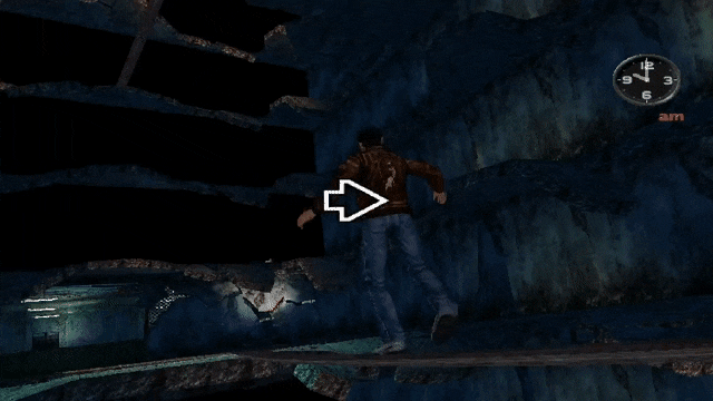 - In the What's Shenmue? demo, Ryo has the ability to crouch while in free roam by pressing the X button. This was removed in the actual games of the series.