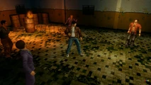 Shizi can be seen as one of the members standing guard on the 6th floor of the Yellow Head Building, who the player will have to battle if they get Ryo Hazuki caught by the lights.