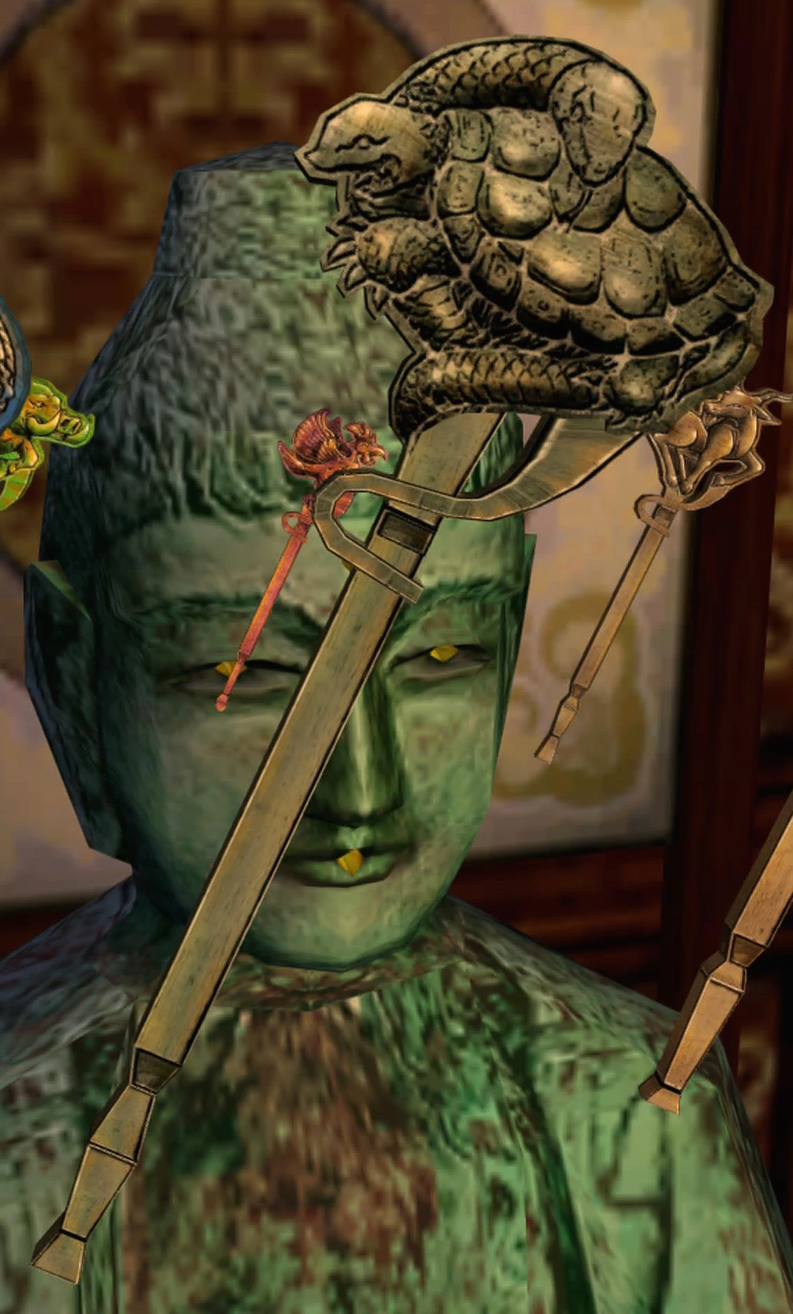 The Snake Tortoise Key is used on the top key slot on the Buddha statue along with 3 other keys:
