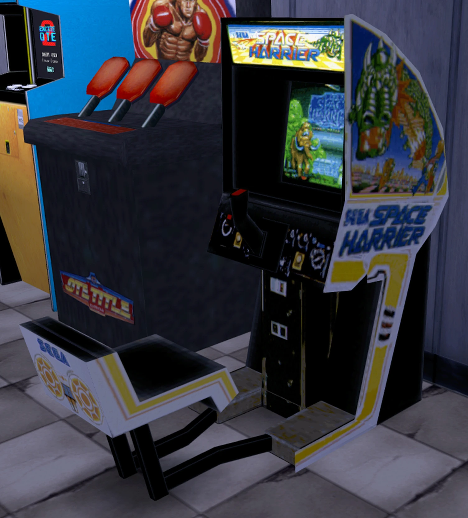Space Harrier (Japanese: スペースハリアー, Hepburn: Supēsu Hariā) is an arcade game developed and released by Sega in December 1985. The game is playable at the arcades in the games Shenmue and Shenmue II. For Ryo Hazuki to play it costs ¥100 at the You Arcade in Dobuita, Yokosuka, Japan and $5 at the Pine Game Arcade in the Golden Quarter, Wan Chai, Hong Kong.