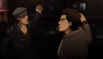 - ―Takeshi threatening Ryo.