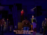 In Episode 5, Terry attempts to kill Guizhang and Ryo while they're on the ground, but fails. He then has his whole entire gang take them on, while he cowardly flees. While they fight the gang, Goro, along with the help of Mai Sawano and Mark Kimberly rescue Nozomi. After the gang is defeated, Guizhang takes on Terry by himself. Terry tries to hit him with his metal baseball bat, but despite him having the upperhand, Guizhang is still effortlessly able to defeat him. A defeated Terry then tells Ryo that danger awaits him in Hong Kong, most likely referring to the Yellow Heads, and that he most likely won't make it out alive.
