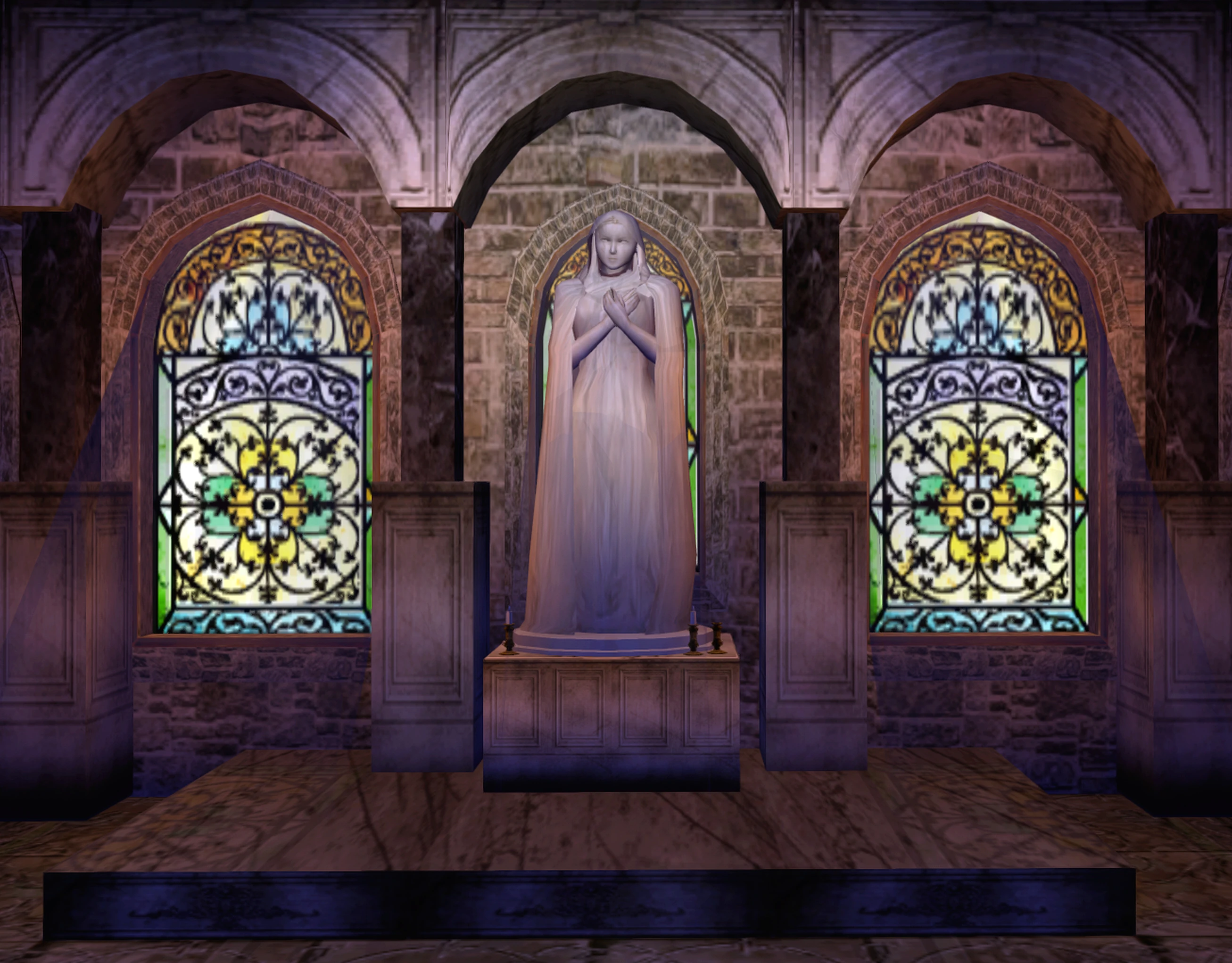 In the original Japanese Dreamcast version of Shenmue II, the statue at the convent was of the Virgin Mary holding Jesus. In the PAL Dreamcast version, it was altered so Jesus is removed, and Mary's hands are crossed on her chest instead. This change was also still intact in the English speech Xbox version of the game and it's 2018 re-release Shenmue I & II. It is unknown why this change was made, and it has never been officially confirmed by Sega or Yu Suzuki. It could possibly be due to Sega not wanting to promote any forms of religion, for people who don't believe in God or Jesus.