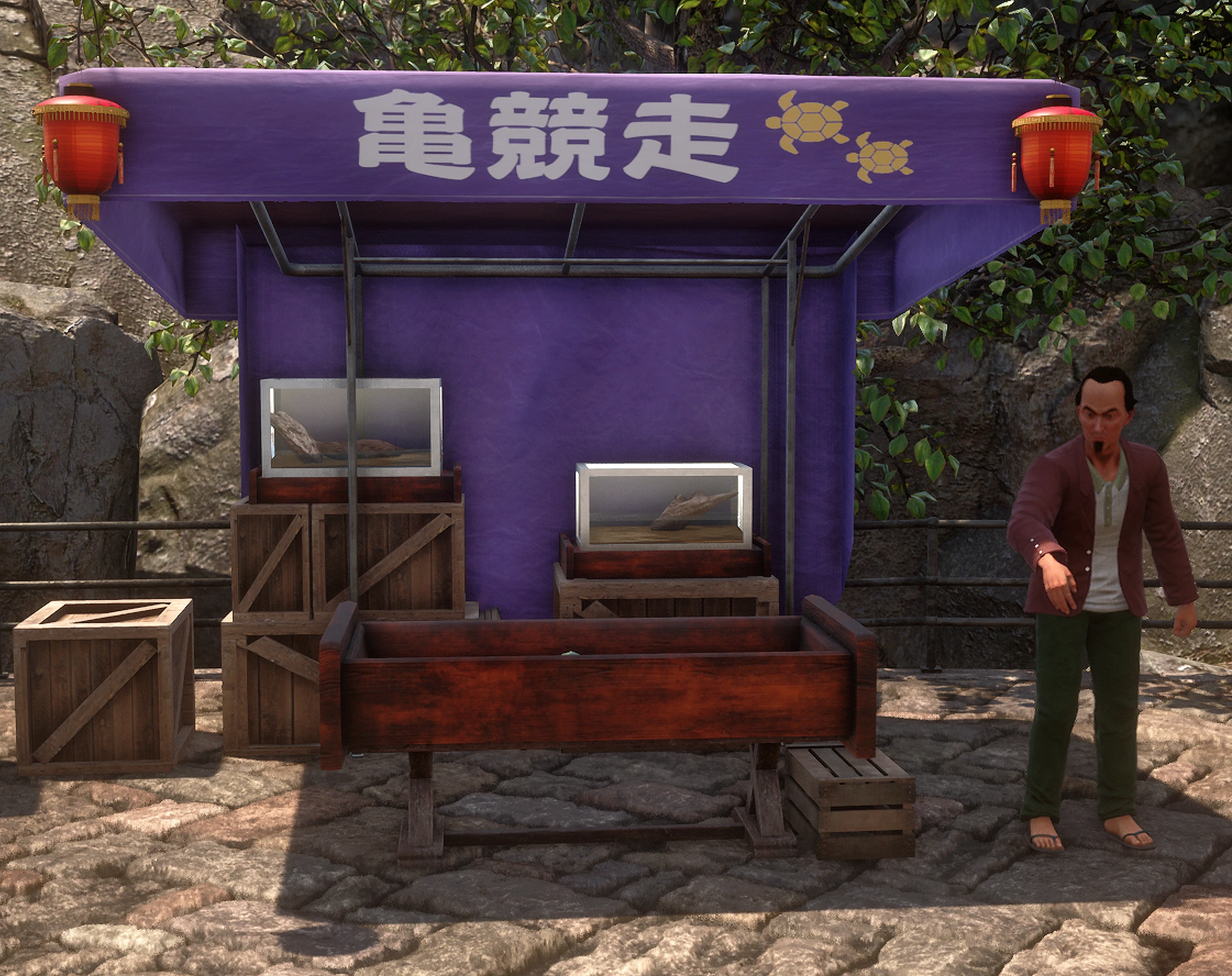 Turtle Race is a market stall featuring Turtle Racing. It is located on Vendor Avenue within Niaowu, Guilin in the game Shenmue III.