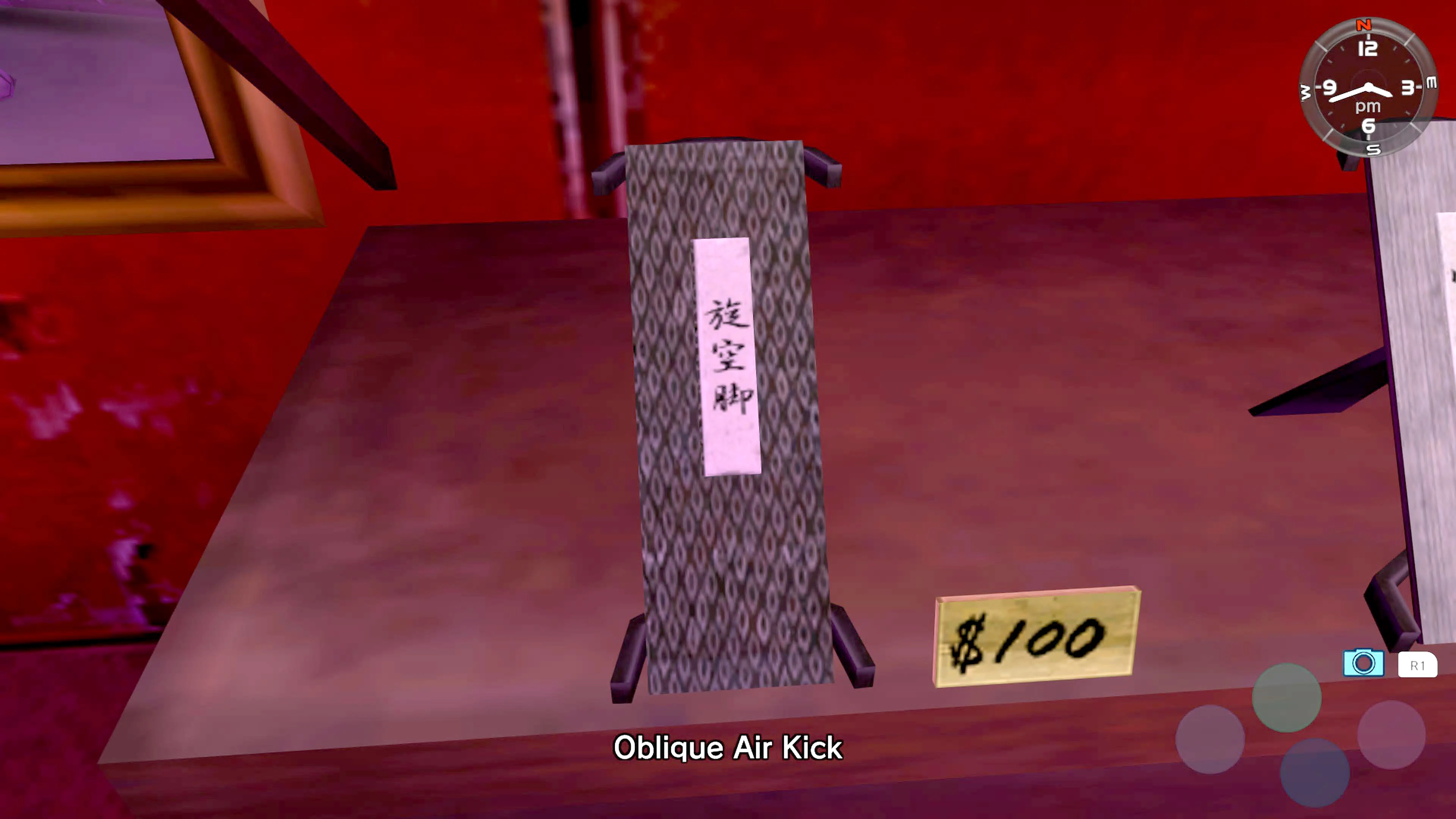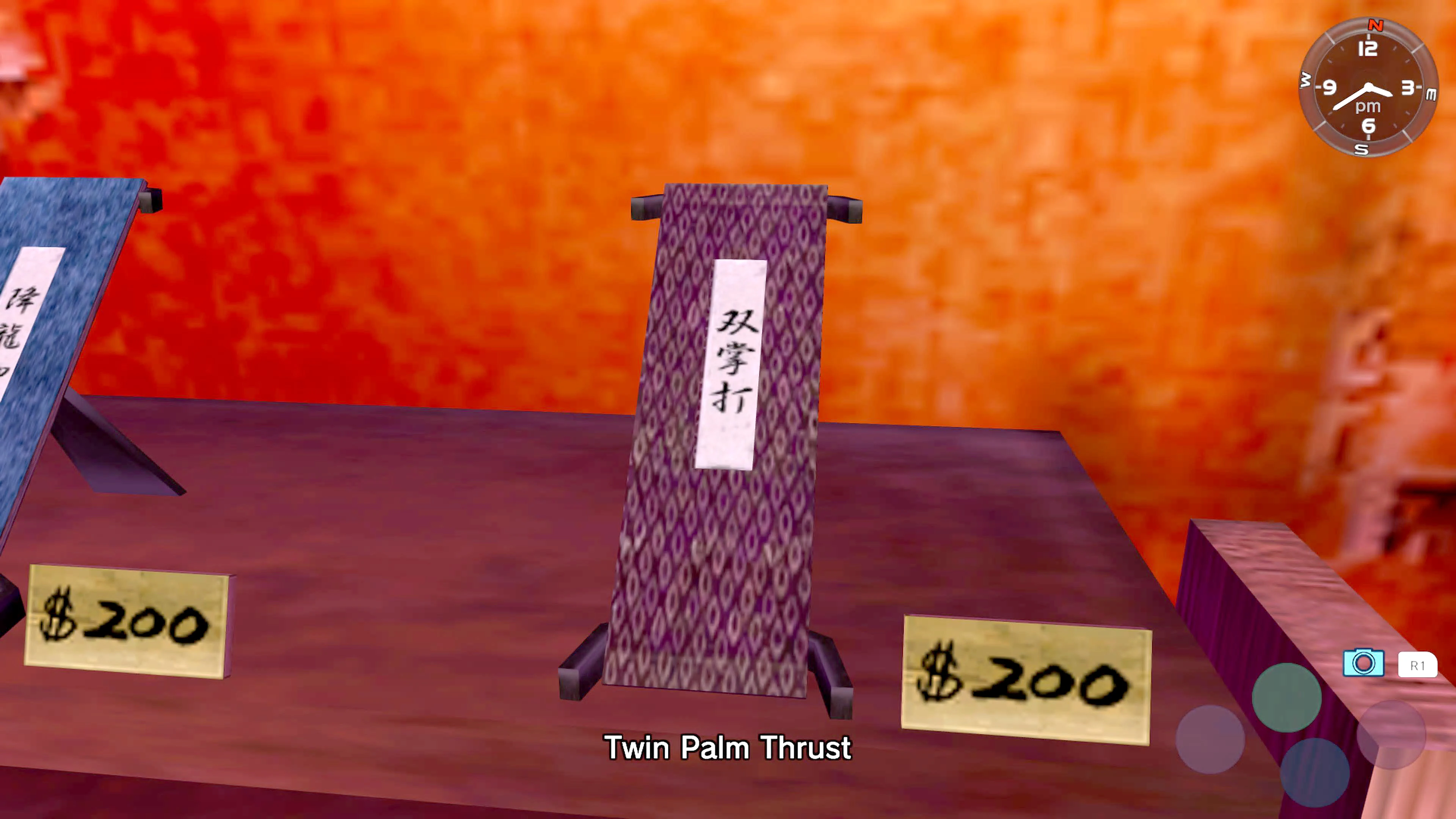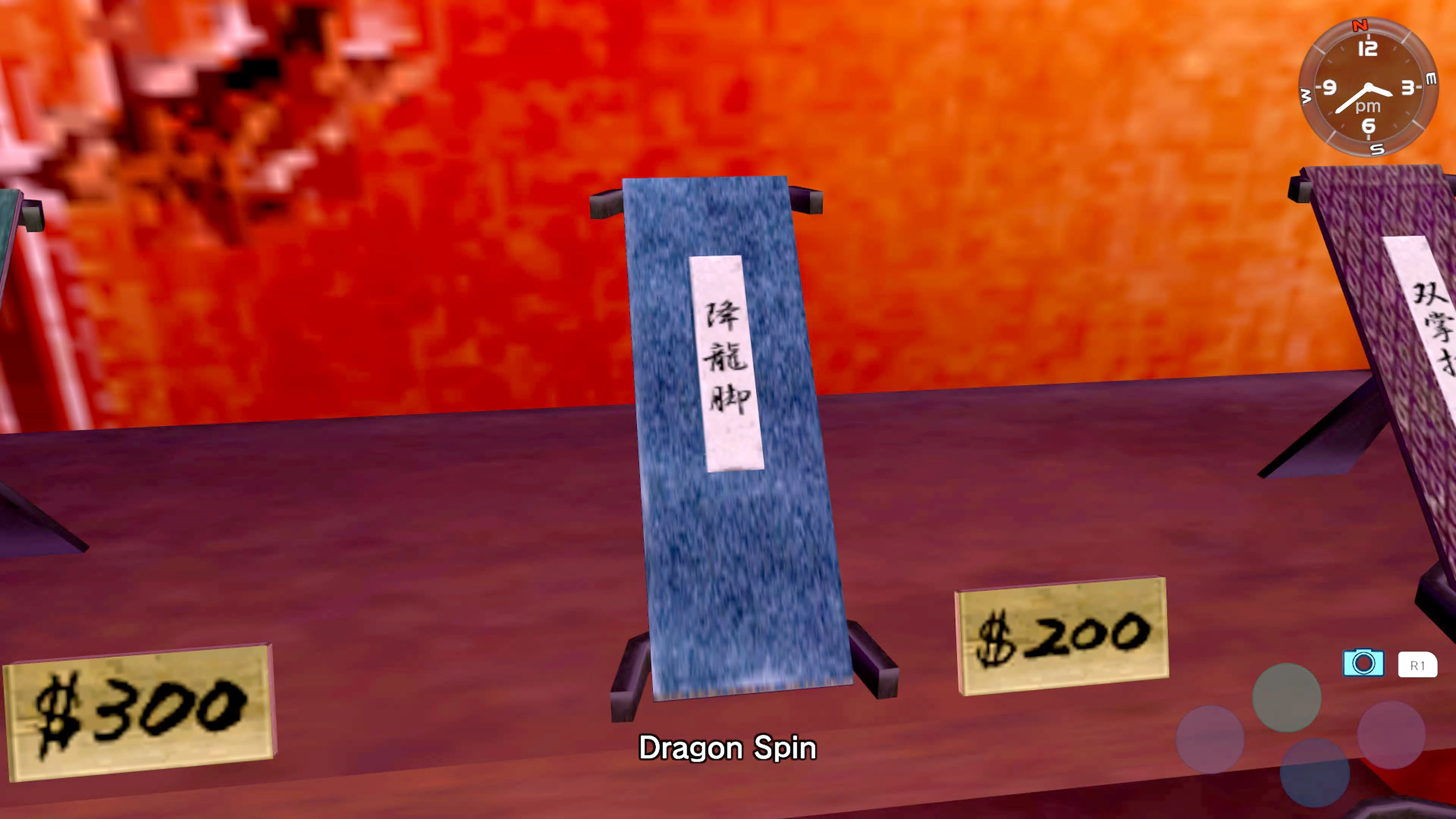 The shop deals mostly in martial arts uniforms and various weapons such as knives and halberds. There are also scrolls on the walls featuring the Virtua Fighter character Shun Di on them. Ryo Hazuki can purchase move scrolls at this shop.